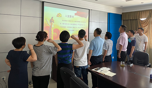 活動中,該公司全體黨員奏唱國歌,集體學習《黨章》,10名6月份入黨的黨員重溫入黨誓詞,并領取了精美的政治生日賀卡和經(jīng)典的勵志讀物。