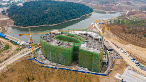 日前,市城控集團所屬子公司荊門漳河生態(tài)新城投資有限公司開發(fā)建設(shè)的荊門園博園主展館――自然博物館主體結(jié)構(gòu)已封頂,展館布展深化大綱定稿工作也已完成。