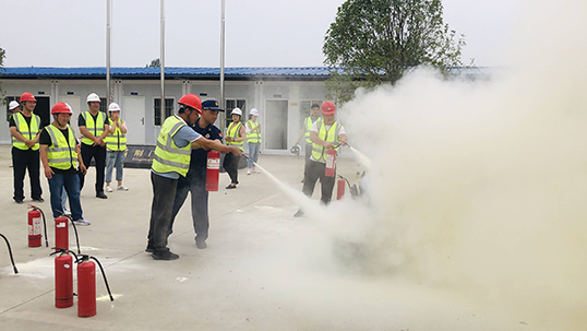 會議結(jié)束后,全體人員在龍井大道項目部院內(nèi)進行消防實戰(zhàn)演練活動。