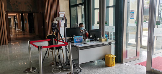 出入口防疫管理。根據(jù)“內(nèi)防輸入,外防擴散,聯(lián)防聯(lián)控,群防群控”的防疫要求,場館只保留一個出入口,并在入口處設(shè)置兩臺自動測溫儀且安排專人值守,值班人員負(fù)責(zé)登記來訪和上班人員信息及體溫監(jiān)測工作。所有進(jìn)入場館人員均需佩戴口罩、掃碼登記、測溫合格后方可入場。