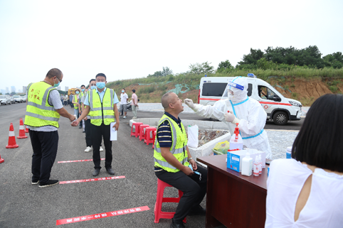 施工人員在進(jìn)行核酸檢測(cè)