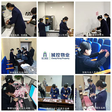 會議期間,物業(yè)公司負責人親臨現(xiàn)場指導,狠抓重點細節(jié),強調(diào)項目全體員工要傳承發(fā)揚“團結、敬業(yè)、創(chuàng)新、卓越”的企業(yè)精神,高質量、高要求、高標準地完成會場布置、后勤服務、會議保障等服務工作??头刻崆皩Ρ吆烷_水壺進行清洗消毒,加班加點制作參會人員的座次名牌、證件胸牌和準備會議發(fā)放材料,以及禮儀迎賓和提供多樣化茶水服務等細微貼心服務;工程部對燈光、音響和會議字幕系統(tǒng)進行細致檢查和調(diào)試,確保會議設備運行正常;秩序部負責對會場周圍做好防控工作,維持會場秩序,確保會議安保服務零差錯;保潔部會前、會后對地面、座椅、衛(wèi)生間等各區(qū)域環(huán)境衛(wèi)生做了細化保潔,處處從細節(jié)入手、精益求精,為全體與會人員提供了細致、專業(yè)的高品質服務。