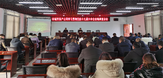 1月5日,市城控集團直屬子公司市城控資產(chǎn)公司學(xué)習(xí)貫徹黨的十九屆六中全會精神宣講會在市金盾公司多功能會議室召開,市城控資產(chǎn)公司班子成員及機關(guān)全體人員,市金盾公司機關(guān)全體人員及所屬子(分)公司班子成員,市天欣公司機關(guān)全體人員,市東辰公司中層及以上干部共計60余人參加學(xué)習(xí)。