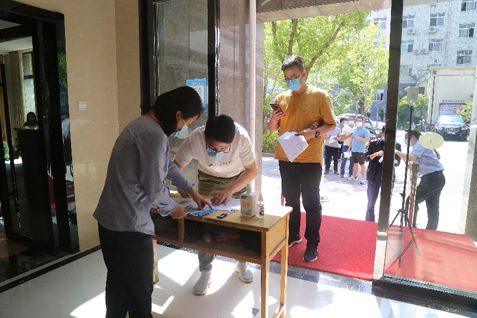 “請(qǐng)大家不要靠得太近,間隔一米,戴好口罩依次掃碼測(cè)體溫……”“請(qǐng)大家打開健康碼、行程碼,上交核酸檢測(cè)報(bào)告之后有序入場(chǎng)……”近日,荊門市建筑施工企業(yè)安管人員考試在市城控集團(tuán)所屬子公司領(lǐng)航公司舉行。