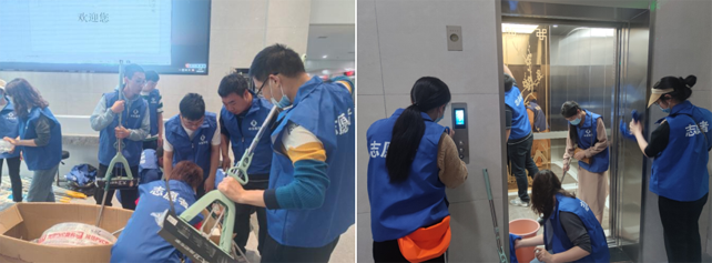 龍泉大廈內(nèi),青年志愿者們按照劃分區(qū)域,全身心投入到衛(wèi)生清掃中。有的拖地掃地,有的用毛巾擦拭污跡灰塵,有的來回運(yùn)送清水和污水……大家熱情高漲、干勁十足,氣氛十分熱烈。經(jīng)過兩個(gè)多小時(shí)的打掃,各個(gè)區(qū)域環(huán)境衛(wèi)生整潔一新。