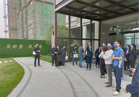 在工作人員指引下,觀摩小組先后參觀了中房?銘庭世家項目沙盤、小區(qū)雙梯水系景觀大門、室外會客廳、產(chǎn)品樣板間及項目施工現(xiàn)場等區(qū)域,詳細了解該項目產(chǎn)品定位、規(guī)劃設計、開發(fā)建設、項目管理等相關情況。