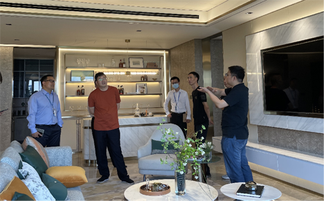 在工作人員引導(dǎo)下,中房集團(tuán)荊門(mén)公司一行人參觀了該公司企業(yè)文化長(zhǎng)廊,“成為客戶(hù)首選、員工自豪、同行尊重、社會(huì)認(rèn)可的公司”企業(yè)理念,讓參觀人員印象深刻。在住宅精裝樣板房以及酒店公寓等公共建筑裝修展示區(qū),前衛(wèi)創(chuàng)新的設(shè)計(jì)理念,精湛規(guī)范的細(xì)節(jié)工藝和新型材料的積極運(yùn)用,吸引參觀人員駐足觀看品鑒。
