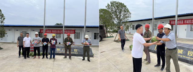 市城控集團直屬子公司俊豐綠建集團負責人帶領班子成員前往各項目施工現(xiàn)場,開展夏季“送清涼、保健康、促發(fā)展”防暑降溫慰問活動,為奮戰(zhàn)在施工及生產(chǎn)一線的干部職工及施工人員送去了防暑降溫物資和藥品。