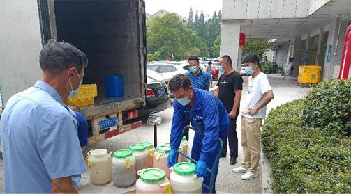 在了解到各醫(yī)療機(jī)構(gòu)存在化學(xué)性廢物、藥物性廢物難以處置的困難后,京環(huán)公司班子帶隊(duì)先后前往荊門城區(qū)及各縣市區(qū)開展收集轉(zhuǎn)運(yùn)工作,收集醫(yī)療廢物總計(jì)2.0747噸。報(bào)請(qǐng)省固管中心、市生態(tài)環(huán)境局批準(zhǔn)后,將化學(xué)性、藥物性醫(yī)療廢物轉(zhuǎn)移到湖北迪晟環(huán)??萍加邢薰具M(jìn)行處置。
