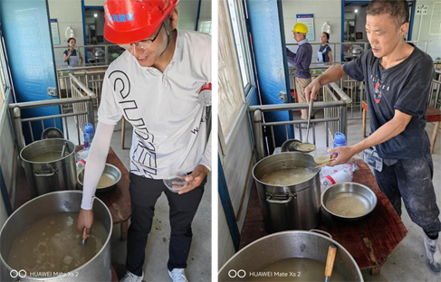 強化服務(wù),做好后勤保障。從“吃”“住”兩大方面著手,為一線施工人員從提供堅實后勤保障。強化建筑工地食堂監(jiān)管,抓好高溫天氣食品安全,適時調(diào)整工作餐菜品種類,確保工人夏天吃得飽、吃得好。在生活區(qū)裝配24小時保供熱水器,每間宿舍配備空調(diào),確保勞累一天的工人能洗上熱水澡、睡上清涼覺。