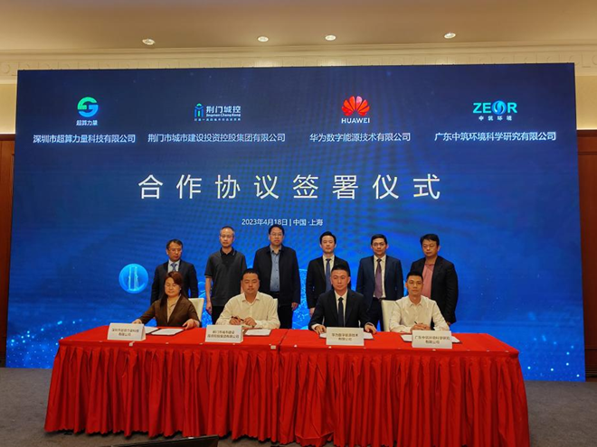 在各方主要負(fù)責(zé)人見證下,荊門城控集團(tuán)與華為數(shù)字能源技術(shù)有限公司、深圳市超算力量科技有限公司、廣東中筑環(huán)境科學(xué)研究有限公司簽訂了《華為超級(jí)充電樁》四方框架合作協(xié)議。