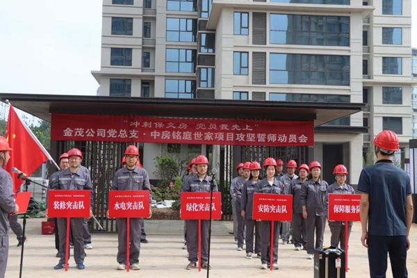 “在中房?銘庭世家項(xiàng)目收官攻堅(jiān)之際,我代表公司全體青年黨員宣誓:令行禁止、服從安排;行動(dòng)自覺(jué)、堅(jiān)守崗位;放棄休息、快趕進(jìn)度;奮戰(zhàn)半月,堅(jiān)決交房!”這是近日金茂建設(shè)公司黨總支在中房?銘庭世家項(xiàng)目召開(kāi)“沖刺保交房 黨員我先上”攻堅(jiān)誓師動(dòng)員會(huì)上的一幕。