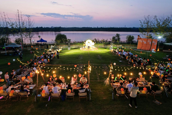 暮色時分,湖畔燈光絢麗多彩,現(xiàn)場樂隊奏響激情的節(jié)奏,大家一邊自助燒烤,一邊沉浸在音樂中,歡樂無限。來自兩個集團公司優(yōu)秀青年紛紛主動展示自己,他們的表演點燃了全場的激情,把活動推向高潮。