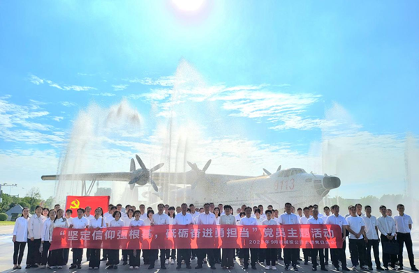 披荊斬棘求真理,科學(xué)救國獻(xiàn)忠誠。全體黨員在講解員的帶領(lǐng)下,沿著極客公園“紅色航班”線路進(jìn)行參觀學(xué)習(xí),重溫入黨誓詞,認(rèn)真聆聽水轟-5、鯤龍AG600、運(yùn)-5飛機(jī)背后的革命歷史,深情感悟老一輩革命家、科研人員獻(xiàn)身國家航空事業(yè)的拳拳愛國之心和報(bào)國之情。隨后,在運(yùn)-5飛機(jī)前,全體黨員認(rèn)真觀看紅色情景劇《永遠(yuǎn)的懷念》,沉浸式緬懷敬愛的周總理,周總理艱苦樸素、勤政愛民的崇高品質(zhì)深深感染現(xiàn)場的每一名黨員。