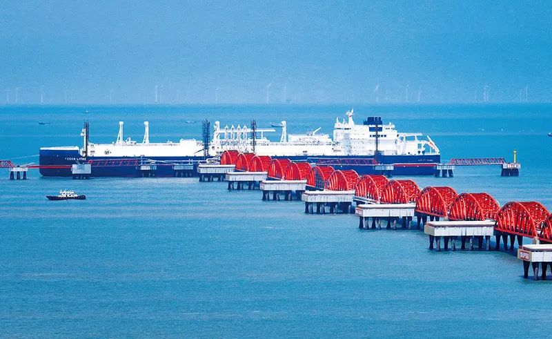 ▲中石油江蘇液化天然氣(LNG)接收站是國家重點(diǎn)工程,接卸來自世界各地的LNG船,其中70%為來自共建“一帶一路”國家的船只。圖為2023年8月13日,塞浦路斯籍“利特克”輪靠泊在中石油江蘇LNG接收站碼頭。 新華社發(fā) 許叢軍/攝