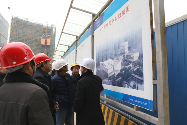 圖為集團(tuán)領(lǐng)導(dǎo)調(diào)研市民中心項(xiàng)目現(xiàn)場(chǎng)