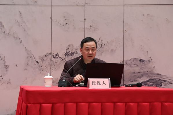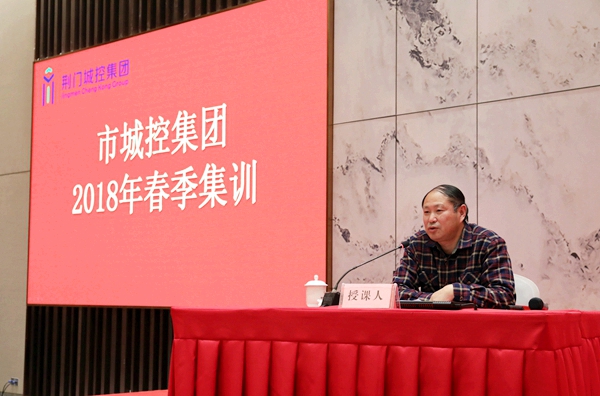 圖為城控集團(tuán)黨委委員、副總經(jīng)理江泉作資產(chǎn)經(jīng)營(yíng)的理論與實(shí)踐專(zhuān)題講課