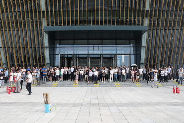 圖為集團(tuán)職工在生態(tài)科技城北廣場(chǎng)進(jìn)行消防演習(xí)