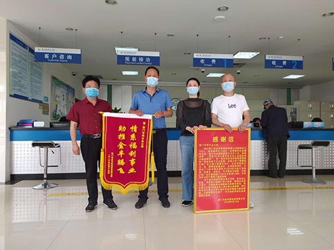 5月15日,金豐公司總經(jīng)理袁家群和東寶區(qū)工商聯(lián)相關(guān)負責人來到市供水總公司,送上感謝信和寫有“情系福利事業(yè) 助推金豐騰飛”字樣的鮮艷錦旗。