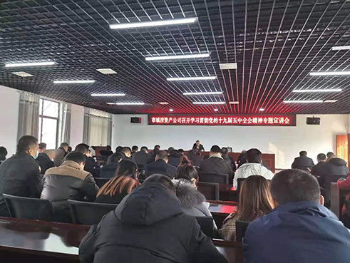 為全面深入學(xué)習(xí)領(lǐng)會(huì)黨的十九屆五中全會(huì)精神,引導(dǎo)廣大黨員干部群眾把思想和行動(dòng)統(tǒng)一到全會(huì)精神上來,把智慧和力量凝聚到落實(shí)全會(huì)確定的各項(xiàng)目標(biāo)任務(wù)上來,推動(dòng)興起學(xué)習(xí)宣傳貫徹全會(huì)精神的熱潮,市城控集團(tuán)所屬市城控資產(chǎn)公司于12月23日在市金盾保安培訓(xùn)學(xué)校多功能電教室組織學(xué)習(xí)貫徹黨的十九屆五中全會(huì)精神專題宣講會(huì)。市城控資產(chǎn)公司及所屬企業(yè)中層及以上干部,公司機(jī)關(guān)工作人員等60余人參加。