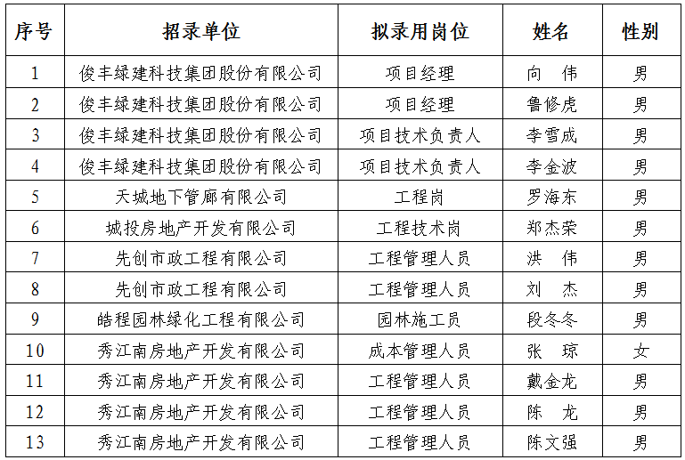 市城控集團(tuán)2021年度員工招聘(工程類)擬錄用人員公示公告