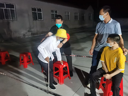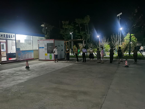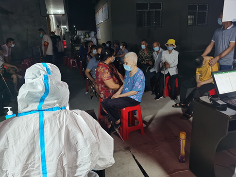 8月8日22點,醫(yī)務人員到村開展核酸采樣檢測,現(xiàn)場已設置了警戒線,擺放了核酸檢測流程圖等各種指示牌。在駐村隊員帶頭表率,精細指揮調度下,現(xiàn)場按照老弱病殘優(yōu)先原則有序排成長隊,受檢人員單向流動,嚴格落實一米間隔要求,各環(huán)節(jié)分工明確,從登記、檢測到秩序維護,人人盡職盡責。