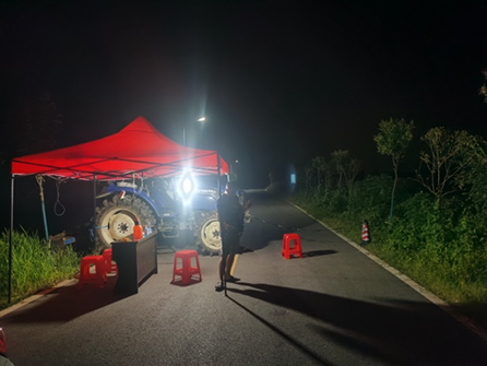 按照鎮(zhèn)政府統(tǒng)一部署,8月8日起,全村迅速行動起來實行封閉管理。封閉3處進村通道,在兩處道路設置卡口,工作隊、村兩委、志愿者全員上陣,24小時輪流值守。嚴格實行外來人員進出登記、測溫,無通行證一律不放行。