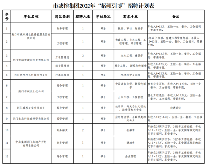 荊門市城市建設(shè)投資控股集團(tuán)有限公司(以下簡(jiǎn)稱集團(tuán))于2016年9月在整合多家市屬優(yōu)質(zhì)國(guó)有企業(yè)的基礎(chǔ)上成立,注冊(cè)資本20億元,總資產(chǎn)623.82億元,主體信用評(píng)級(jí)AA+級(jí),員工2000余人。主要負(fù)責(zé)荊門中心城區(qū)政府性投資項(xiàng)目的投融資和建設(shè)、政府授權(quán)范圍內(nèi)國(guó)有資產(chǎn)的經(jīng)營(yíng)管理及城市資源的特許經(jīng)營(yíng)、對(duì)外投資等業(yè)務(wù)。現(xiàn)因經(jīng)營(yíng)發(fā)展需要,集團(tuán)及所屬子公司擬引進(jìn)14名全日制碩士研究生。公告如下: