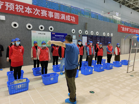 泳池內(nèi),游泳健兒們?cè)谒信〝乩?,奮勇爭(zhēng)先;賽場(chǎng)上一群躍動(dòng)的“紅色身影”也在同時(shí)間賽跑,爭(zhēng)分奪秒,用他們的志愿服務(wù)闡釋另一種團(tuán)結(jié)一致、勇于拼搏的體育精神,他們被組委會(huì)、運(yùn)動(dòng)員們親切地稱呼為“城控志愿紅”。為確保大賽安全平穩(wěn)有序進(jìn)行,城控集團(tuán)志愿者們?cè)谫惽耙恢軆?nèi)接受了崗前培訓(xùn),認(rèn)真參加賽前實(shí)地培訓(xùn)和操作實(shí)踐,明確志愿者服務(wù)崗位的工作職責(zé)、流程和標(biāo)準(zhǔn)。賽事中,城控集團(tuán)志愿者們分別承擔(dān)了競(jìng)賽組織、運(yùn)動(dòng)員服務(wù)、醫(yī)療救護(hù)、疫情防控、場(chǎng)內(nèi)勤務(wù)、頒獎(jiǎng)禮儀、官方記錄、賽事引導(dǎo)、禮賓接待、行政接待、場(chǎng)外輔助服務(wù)等志愿服務(wù)工作。