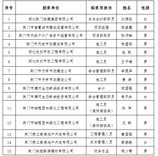 1.湖北先創(chuàng)市政工程有限公司造價師、荊門市皓程園林綠化工程有限公司預(yù)算員2個崗位空缺。
