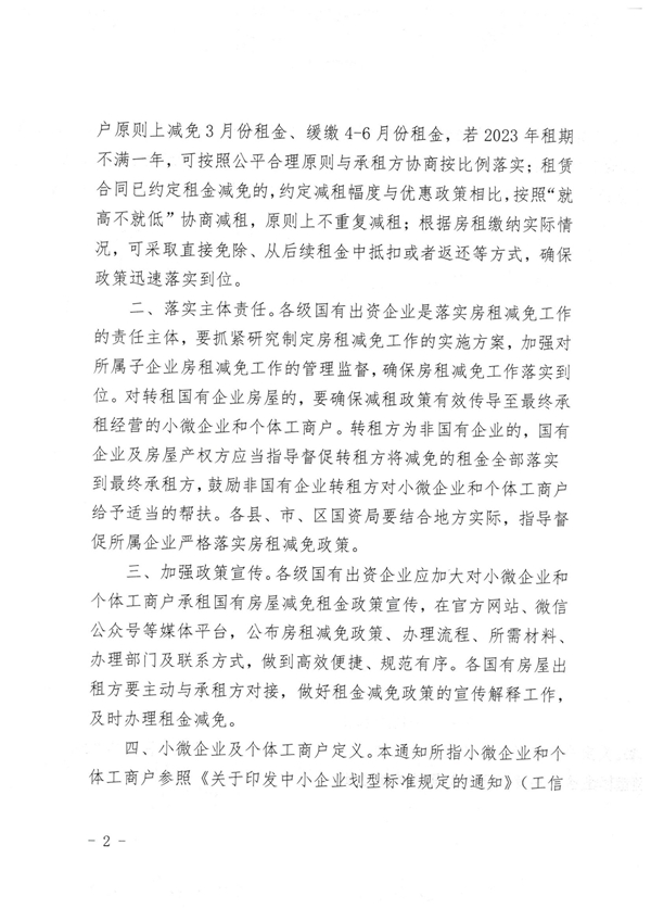 市政府國資委關(guān)于2023年減免小微企業(yè)和個體工商戶房租的通知