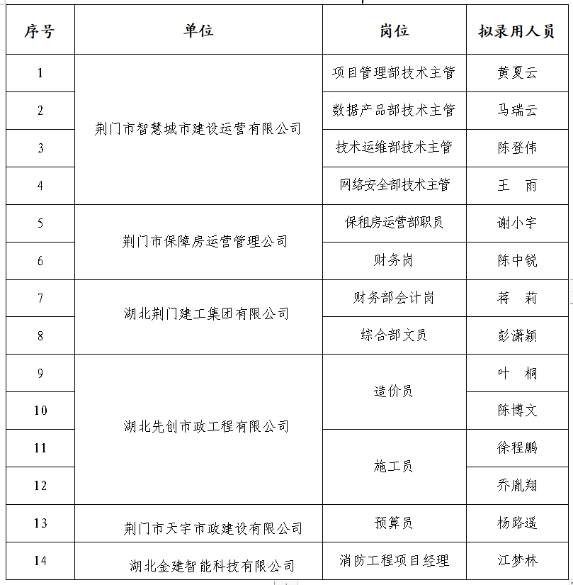 1.智城公司技術(shù)總監(jiān)、先創(chuàng)公司財(cái)務(wù)崗、天宇市政公司施工員崗空缺;保障房公司保租房運(yùn)營崗空缺1人。