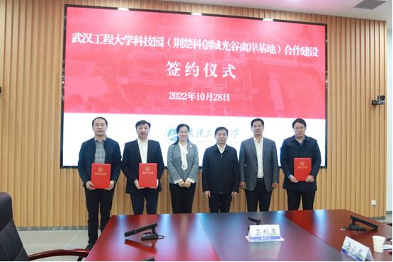 10月28日上午,武漢工程大學(xué)科技園(荊楚科創(chuàng)城光谷離岸基地)項目合作簽約儀式在武漢工程大學(xué)流芳校區(qū)舉行。武漢工程大學(xué)黨委書記程幼金,黨委副書記、校長王存文,武漢工大資產(chǎn)經(jīng)營管理有限公司總經(jīng)理葉健,市委常委、市委宣傳部部長徐莉,荊門城控集團黨委副書記、總經(jīng)理程雄等參加簽約儀式。
