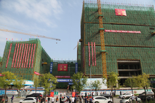 圖為荊門傳媒中心封頂儀式現(xiàn)場