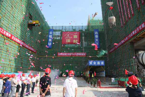 9月15日上午9:15時(shí),隨著最后一塊混凝土澆筑完畢,荊門傳媒中心項(xiàng)目主體結(jié)構(gòu)工程正式封頂,比原定計(jì)劃提前了3個(gè)月。標(biāo)志著荊門傳媒中心全面進(jìn)入設(shè)備安裝和裝飾裝修階段。