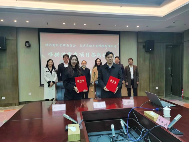1月31日下午,漳河新區(qū)管委會與北京啟旭貝貝科技有限公司在生態(tài)科技城D106會議室舉行哆貓貓零食項(xiàng)目簽約儀式。新區(qū)黨工委書記陶然出席簽約儀式并講話,新區(qū)黨工委副書記、管委會副主任魯雷主持,新區(qū)黨工委委員、管委會副主任程樹平代表新區(qū)管委會簽約,荊門城控集團(tuán)總經(jīng)理程雄及生投公司負(fù)責(zé)人見證簽約。