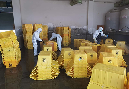 隨著我市疫情防控工作的持續(xù)深入,醫(yī)廢收集處置工作任務(wù)愈加繁重。為保障工作順利開展,市城控集團(tuán)所屬城建集團(tuán)干部職工積極響應(yīng)市城控集團(tuán)號召,迅速組建志愿者支援小隊,全力支援醫(yī)廢收集處置工作。 自疫情爆發(fā)以來,醫(yī)廢收集、轉(zhuǎn)運(yùn)、處理任務(wù)量與日俱增,我市唯一從事醫(yī)廢處理專門機(jī)構(gòu)――市城控集團(tuán)所屬荊門京環(huán)環(huán)??萍加邢薰荆ê喎Q京環(huán)公司)人員設(shè)備均處于超負(fù)荷運(yùn)轉(zhuǎn)狀態(tài),醫(yī)療廢物處置能力受到嚴(yán)峻考驗。疫情防控、義無反顧,在得知京環(huán)公司面臨醫(yī)廢處置人員緊缺的困境后,城建集團(tuán)廣大干部職工紛紛報名請戰(zhàn),經(jīng)過條件篩選和綜合研判后,最終確定集團(tuán)所屬保障房公司彭友松、黃瑋、韓斗斗和集團(tuán)所屬先創(chuàng)市政公司黃飛、徐爽5名志愿者加入到醫(yī)廢處理支援隊伍,協(xié)助開展醫(yī)療廢物應(yīng)急收集和轉(zhuǎn)運(yùn)工作。經(jīng)過統(tǒng)一培訓(xùn)后,5人根據(jù)調(diào)配分工迅速到崗就位,投入到緊張有序的醫(yī)療廢物箱的清潔消毒和整理工作中。 每天早上六點半,測量完體溫、穿好防護(hù)服,戴好口罩、護(hù)目鏡,天還未亮,他們就開始了一天的工作。每天負(fù)責(zé)對全市城區(qū)以及各縣市地區(qū)的醫(yī)院、衛(wèi)生院和集中隔離觀察點所運(yùn)回的醫(yī)療廢物儲蓄箱進(jìn)行清洗消毒作業(yè),以保證次日轉(zhuǎn)運(yùn)車有充足消毒后的儲物箱進(jìn)行置換。由于穿著密不透氣的防護(hù)服,連續(xù)工作數(shù)小時就會汗流浹背、全身透濕;長時間佩戴口罩呼吸費(fèi)力,常有缺氧窒息的感覺;周身充斥著消毒液的氣味,長期刺激著喉嚨和皮膚,咳嗽、紅疹頻發(fā)……但他們克服種種不適,依然堅守崗位,并盡量少喝水,只為節(jié)省休息時間,節(jié)約防護(hù)物資。他們每天堅持最晚離開崗位,只為盡可能多地清洗和處置醫(yī)療廢物箱,力保臟箱不積壓,車輛不等箱,一線能供應(yīng)。 彭友松是保障房公司黨總支委員、工會主席,年屆50歲,在這批志愿者中最為年長,每天總是最早到車間調(diào)試設(shè)備,又是最后一個清洗設(shè)備、打掃衛(wèi)生、關(guān)閉設(shè)備的。 黃瑋是保障房公司團(tuán)支部書記、荊翰苑項目營銷專班負(fù)責(zé)人,因為家中有老有小、小兒子不到兩歲,他家人起初不同意,他說:“如果大家都怕危險,都不愿干,國家就完了。去支援的都有家庭,和醫(yī)護(hù)人員相比,我們出這點力算什么?” 保障房公司青年員工、入黨積極分子韓斗斗與妻子將一歲多的女兒送至鄉(xiāng)下父母家中照料后,雙雙請纓出戰(zhàn),參加增援,妻子前往一醫(yī)北院參加新冠肺炎危重病人集中收治工作,被大家稱為“抗疫最美夫妻”。 黃飛是先創(chuàng)市政公司安全部的一名年輕員工,更是一名青年黨員,他的孩子才三歲,而身為老師的妻子不僅要照顧幼子,每天還得負(fù)責(zé)幾十名孩子的網(wǎng)絡(luò)教學(xué)任務(wù),但在聽到這個消息后,妻子并沒有埋怨,對他的決定表示了理解和支持。 徐爽是先創(chuàng)市政公司工程技術(shù)部的業(yè)務(wù)骨干,多次被評為“五星黨員”“優(yōu)秀共產(chǎn)黨員”。他兒子剛5歲,女兒才半個月,妻子還在坐月子,都需要人照顧,一時猶豫不決。妻子察覺到了他的擔(dān)心與顧慮,主動提出:“你放心去吧,家里有我,再說還有姥姥、姥爺呢!咱們會把兩個孩子照顧好的!” 舍小家、顧大家,對家人的不舍、對孩子的擔(dān)心,阻止不了志愿者們參加防控阻擊戰(zhàn)工作的腳步,充分體現(xiàn)了他們的勇于擔(dān)當(dāng)、甘于奉獻(xiàn)的博愛精神。在這場沒有硝煙的戰(zhàn)“疫”中,他們用不動聲色的善良挺身而出,用毫不猶豫的勇氣沖鋒在前,他們是奮戰(zhàn)在疫情防控前線的真正勇士,向戰(zhàn)“疫”中的最美“逆行者”致敬?。ㄎ?、圖:熊飛、李文翔、周夢婷、瞿燕妮)