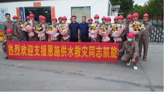 7月27日,市城控集團所屬市供水總公司逆行出征恩施市的應(yīng)急供水救援隊全部平安凱旋。市供水總公司黨委委員、副總經(jīng)理曾波帶領(lǐng)相關(guān)負責人趕往荊門北高速公路出入口迎接,獻上鮮花感謝8名隊員勇往直前,不畏艱險,圓滿完成了這次艱巨的供水救援任務(wù)。